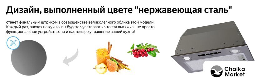 конструкция скрытая, монтаж для встраивания, ширина 52 см, управление электронное/кнопочное, производительность мотора 800 м³/ч, цвет кремовый