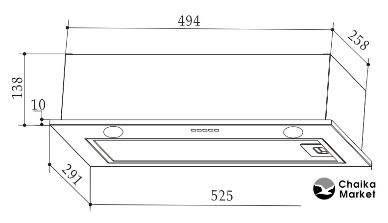 конструкция скрытая, монтаж для встраивания, управление механическое/слайдерное, производительность мотора 600 м³/ч, ширина 59.8 см