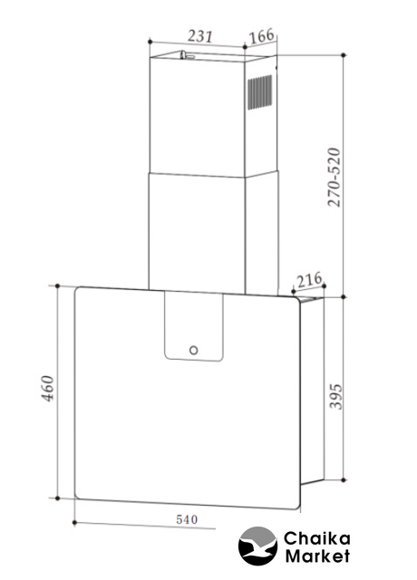 конструкция наклонная, монтаж настенный, управление электронное/кнопочное, производительность мотора 550 м³/ч, ширина 60 см
