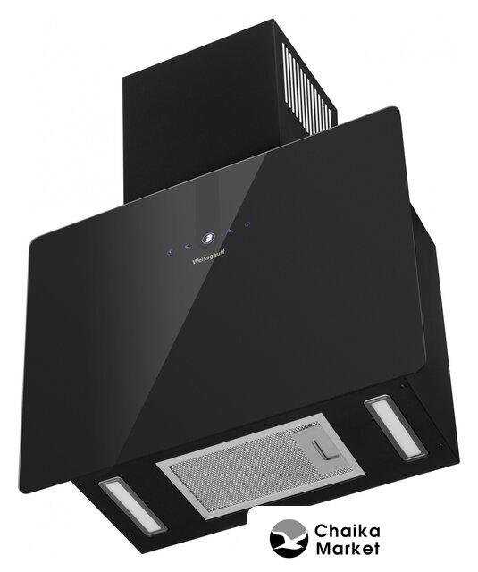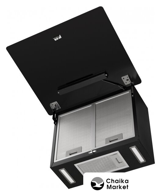 конструкция скрытая, монтаж для встраивания, ширина 59.8 см, управление сенсорное, производительность мотора 1200 м³/ч, цвет черный