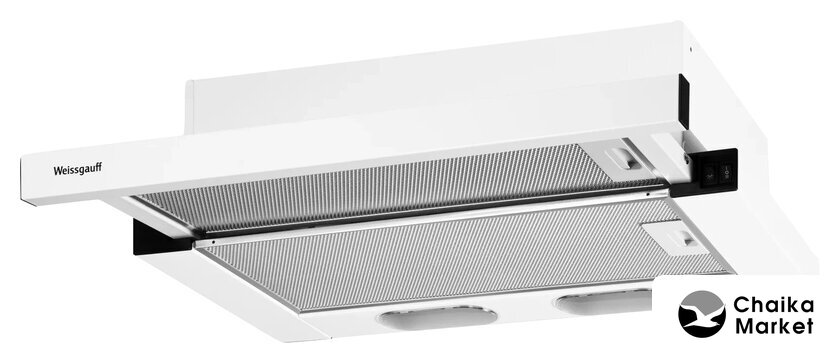 конструкция купольная, монтаж настенный, ширина 60 см, управление электронное/кнопочное, производительность мотора 900 м³/ч, цвет белый