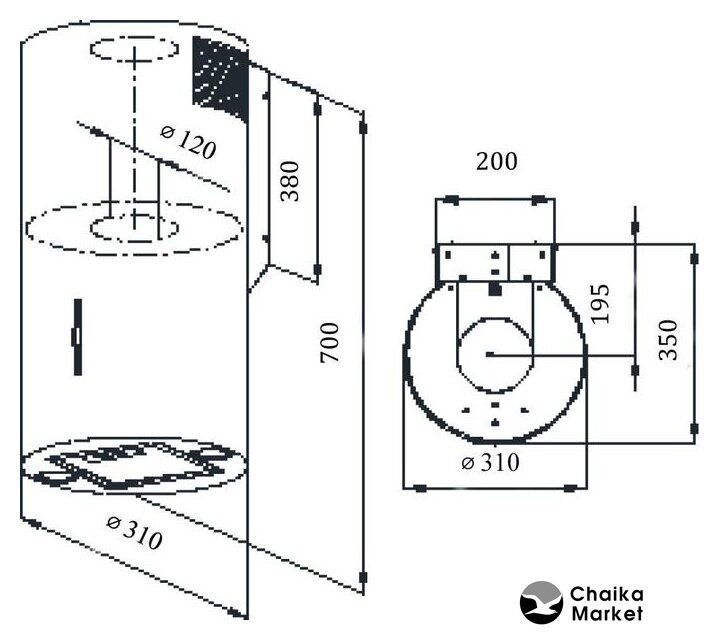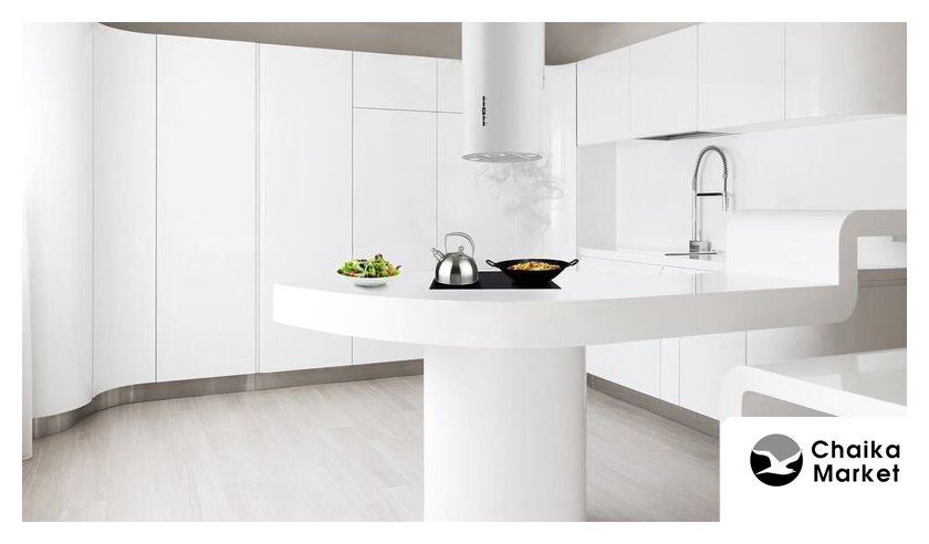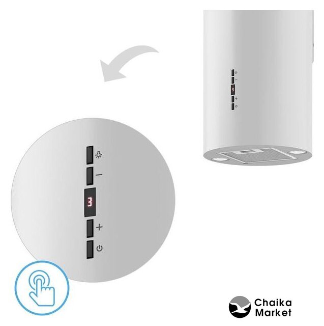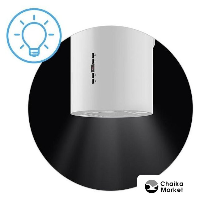 конструкция коробчатая, монтаж настенный, ширина 31 см, управление механическое/кнопочное, производительность вытяжки 300 м³/ч, производительность мотора 900 м³/ч, цвет белый