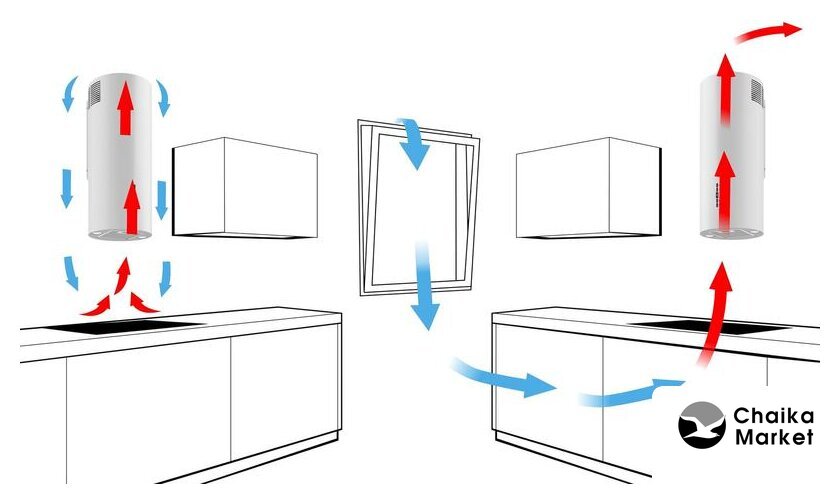конструкция Т-образная, монтаж настенный, управление механическое/кнопочное, производительность мотора 450 м³/ч, ширина 90 см
