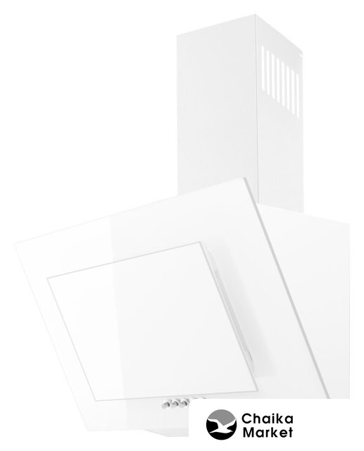 конструкция наклонная, монтаж настенный, ширина 59.6 см, управление механическое/кнопочное, производительность вытяжки 650 м³/ч, производительность мотора 845 м³/ч, цвет белый
