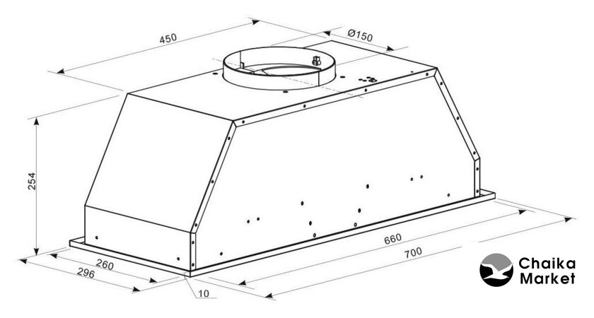 конструкция наклонная, монтаж настенный, ширина 59.6 см, управление механическое/кнопочное, производительность мотора 1100 м³/ч, цвет белый