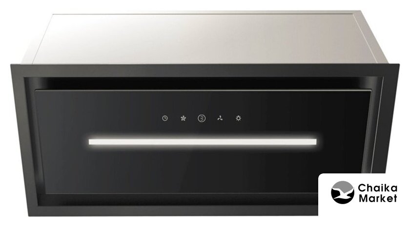 конструкция скрытая, монтаж для встраивания, ширина 55 см, управление механическое/кнопочное, производительность мотора 1000 м³/ч, цвет нержавеющая сталь