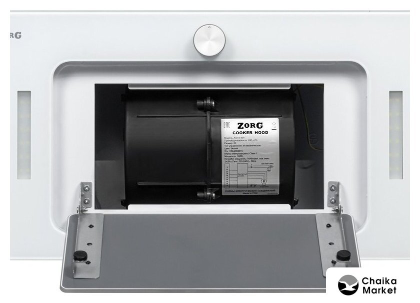 конструкция наклонная, монтаж настенный, ширина 60 см, управление сенсорное, производительность мотора 1080 м³/ч, цвет белый
