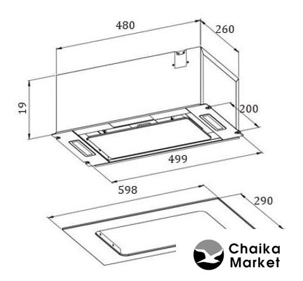 конструкция скрытая, монтаж для встраивания, ширина 50 см, управление механическое/кнопочное, производительность вытяжки 1000 м³/ч, цвет нержавеющая сталь