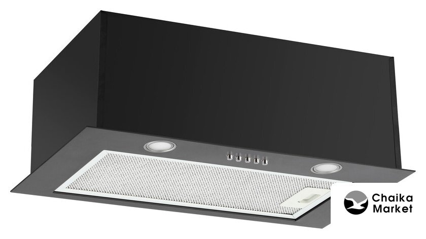 конструкция Т-образная, монтаж настенный, ширина 60 см, управление механическое/кнопочное, производительность мотора 600 м³/ч, цвет черный