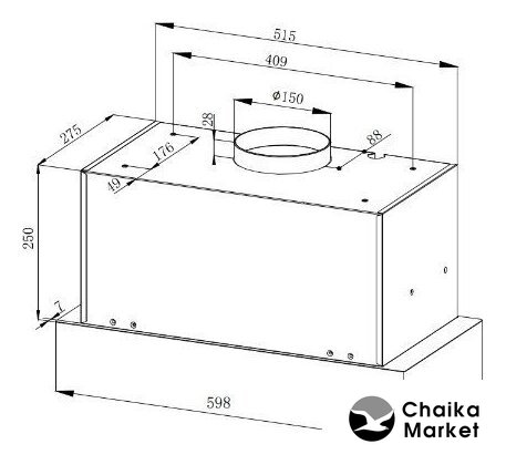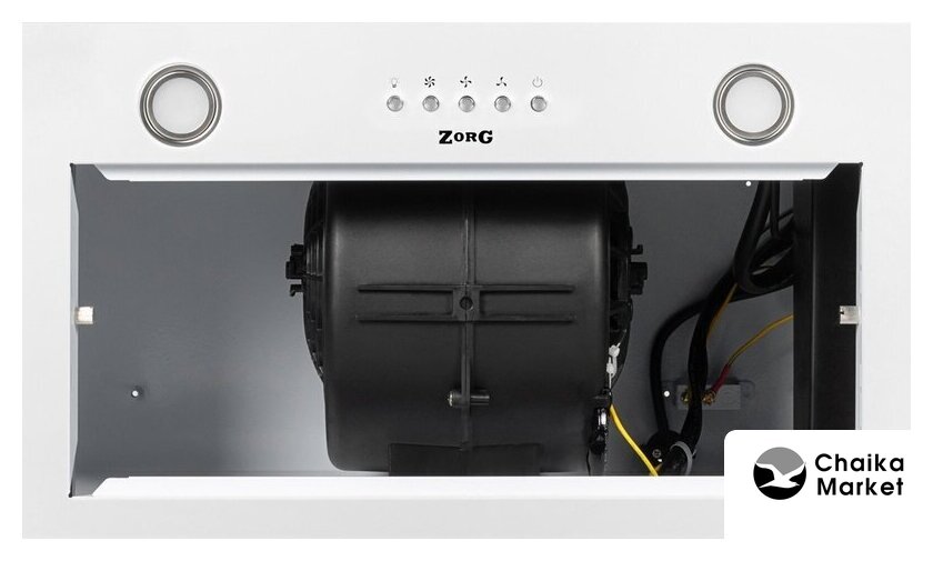 конструкция купольная, монтаж настенный, управление механическое/кнопочное, производительность мотора 500 м³/ч, ширина 60 см