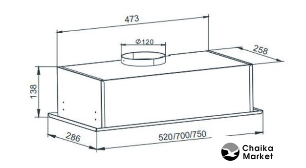 конструкция скрытая, монтаж для встраивания, управление механическое/слайдерное, производительность мотора 600 м³/ч, ширина 59.8 см