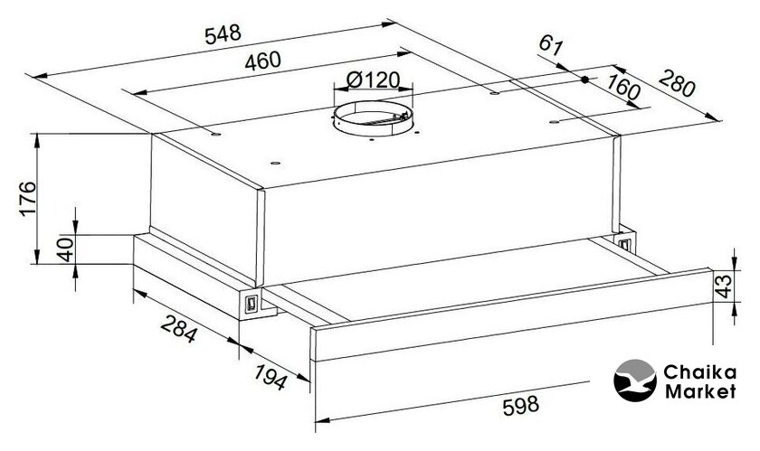 конструкция купольная, монтаж настенный, ширина 50 см, управление механическое/кнопочное, производительность вытяжки 600 м³/ч, цвет коричневый
