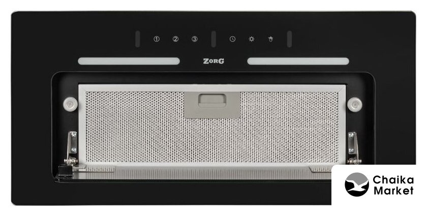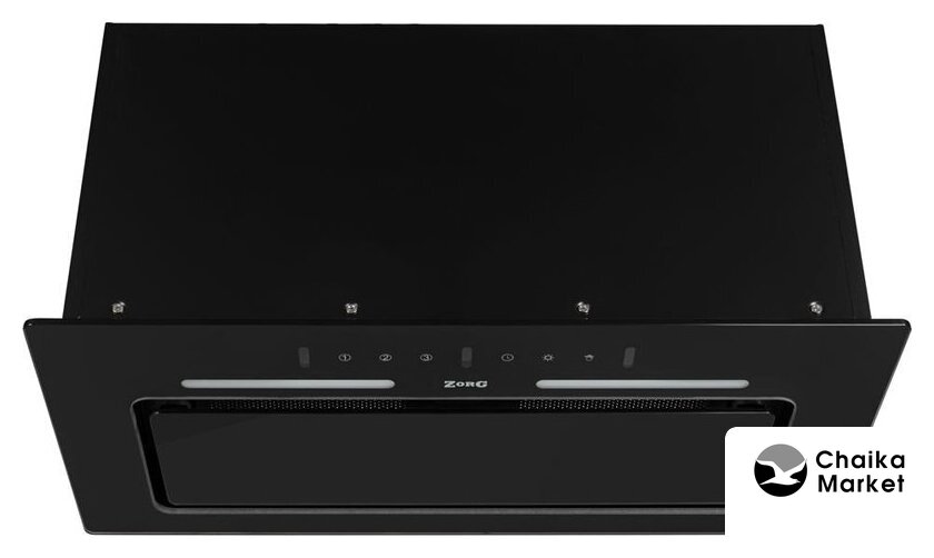 конструкция наклонная, монтаж настенный, ширина 59.5 см, управление сенсорное, производительность мотора 1000 м³/ч, цвет черный