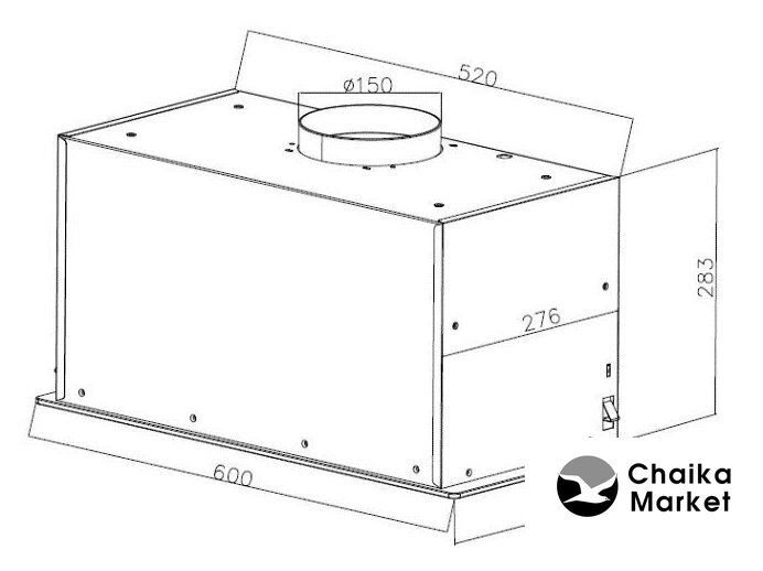 конструкция Т-образная, монтаж настенный, ширина 60 см, управление сенсорное, производительность мотора 1000 м³/ч, цвет белый