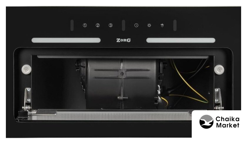 конструкция Т-образная, монтаж настенный, ширина 60 см, управление сенсорное, производительность мотора 1000 м³/ч, цвет черный