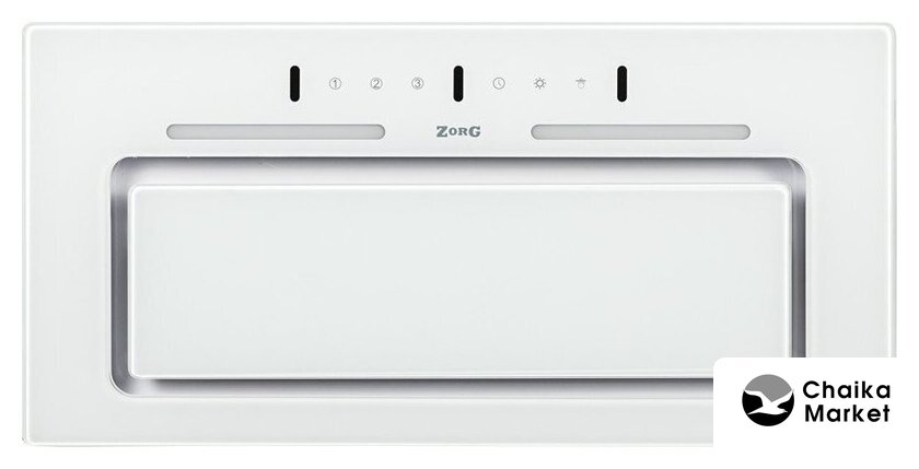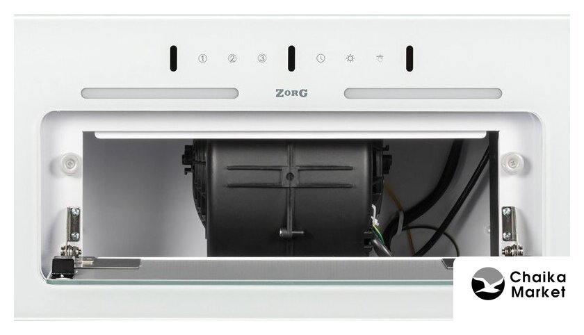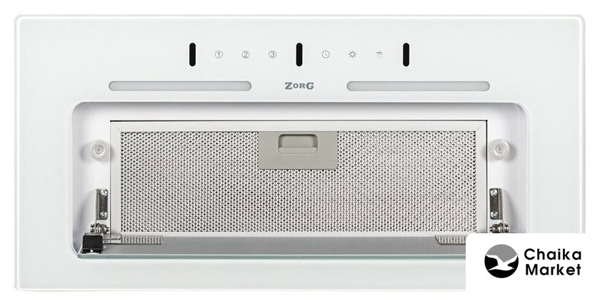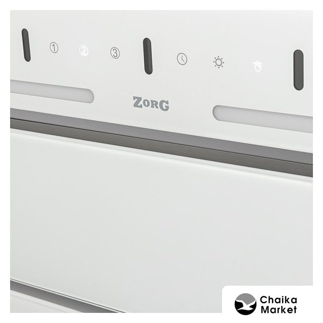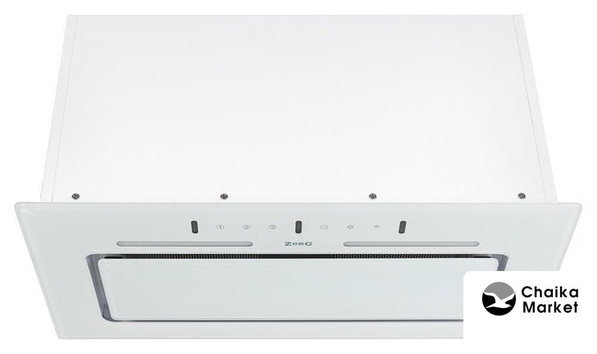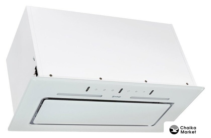 конструкция скрытая, монтаж для встраивания, ширина 59.8 см, управление сенсорное, производительность мотора 1200 м³/ч, цвет белый