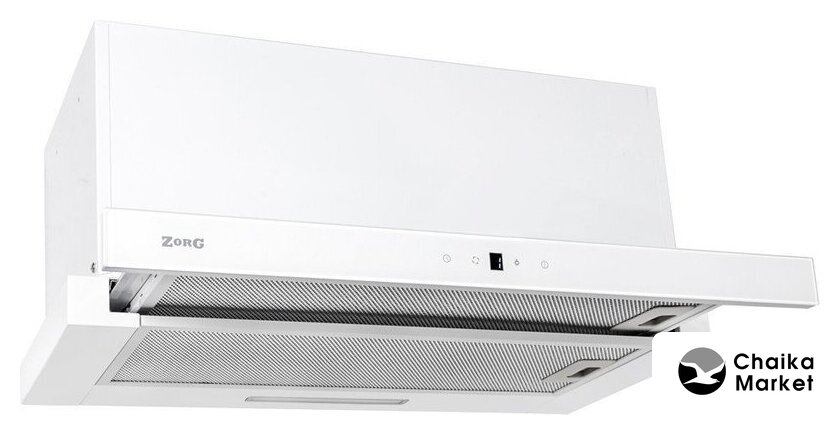 конструкция наклонная, монтаж настенный, ширина 60 см, управление сенсорное, производительность мотора 1260 м³/ч, цвет белый