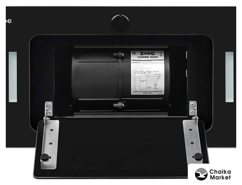 конструкция наклонная, монтаж настенный, ширина 59.5 см, управление сенсорное, производительность мотора 750 м³/ч, цвет белый