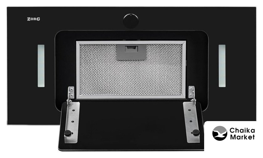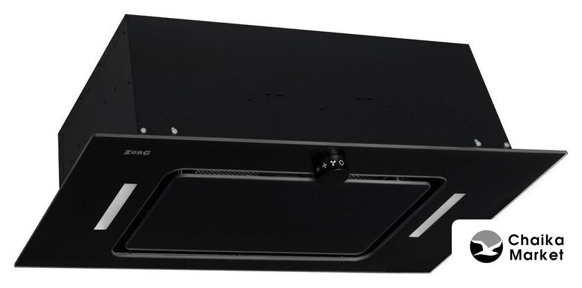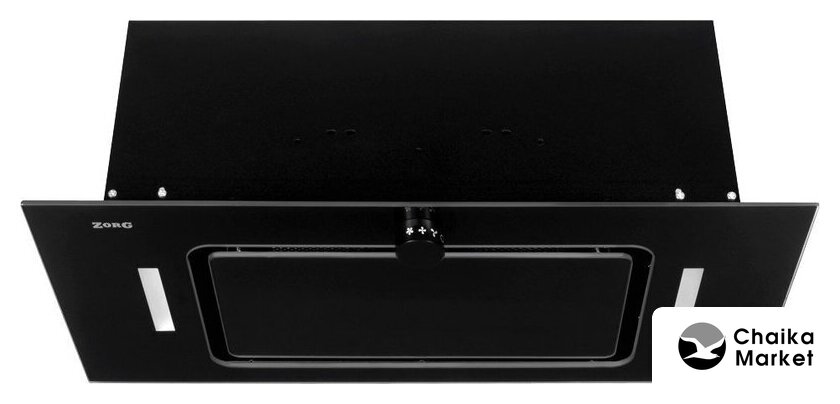 конструкция скрытая, монтаж для встраивания, ширина 52 см, управление сенсорное/жестами, производительность мотора 900 м³/ч, цвет черный