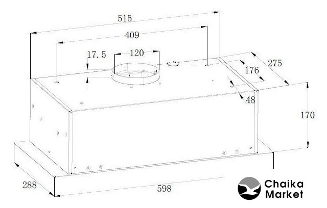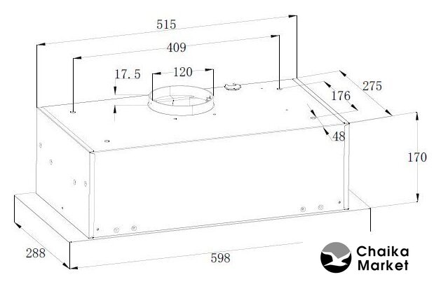 конструкция купольная, монтаж настенный, управление механическое/кнопочное, производительность мотора 400 м³/ч, ширина 59 см