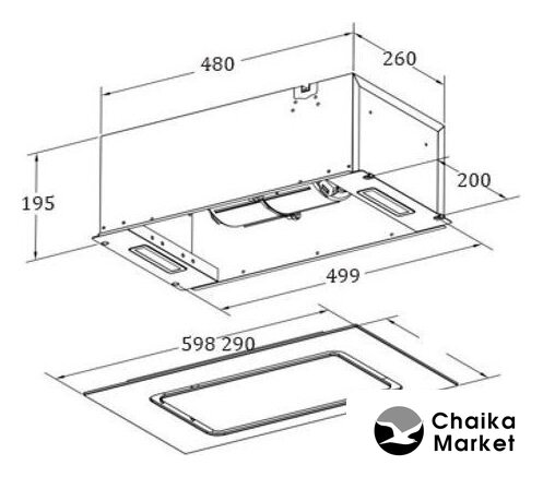 конструкция скрытая, монтаж для встраивания, ширина 59.8 см, управление механическое/поворотный переключатель, производительность мотора 850 м³/ч, цвет белый