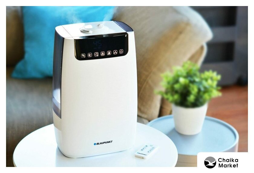 ультразвуковой, помещение до 47 м², производительность 300 мл/ч, резервуар 6 л, гигростат, Amazon Alexa/Google Home/фирменное приложение, ароматизация, шум 28 дБ, цвет белый/синий