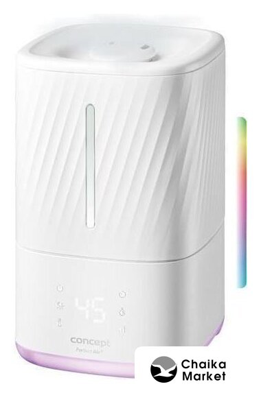 ультразвуковой, производительность 400 мл/ч, резервуар 5 л, гигростат, ионизация, ароматизация, шум 0 дБ, цвет белый/серый/черный
