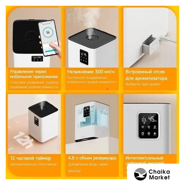 ультразвуковой, помещение до 30 м², производительность 25 мл/ч, резервуар 0.5 л, ароматизация