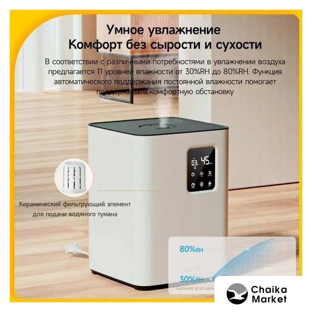 ультразвуковой, помещение до 30 м², резервуар 1.3 л, ароматизация, цвет бежевый/белый