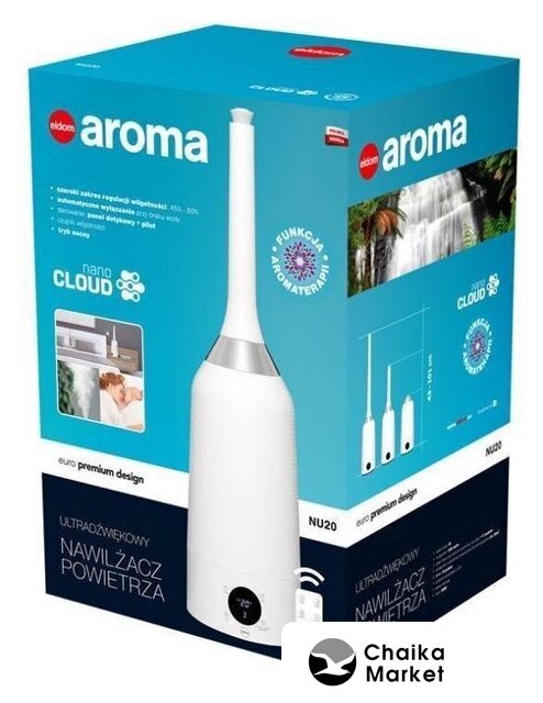 ультразвуковой, помещение до 20 м², производительность 60 мл/ч, резервуар 1.2 л, ароматизация, шум 0 дБ, цвет белый
