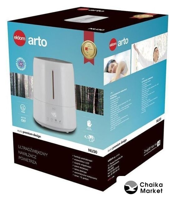 ультразвуковой, помещение до 35 м², производительность 350 мл/ч, резервуар 6 л, ароматизация, цвет белый/серебристый