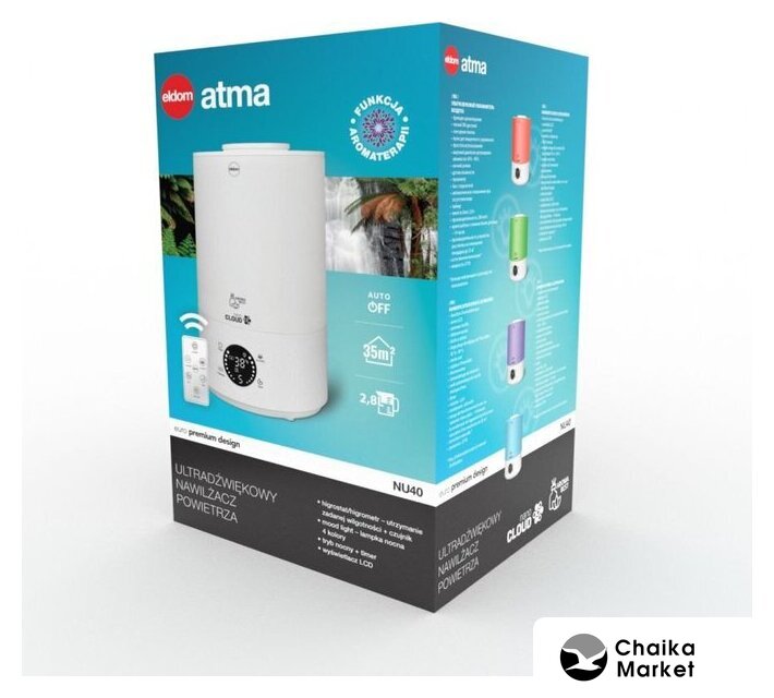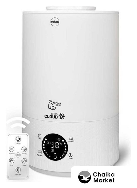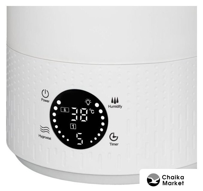 ультразвуковой, помещение до 30 м², производительность 280 мл/ч, резервуар 4.5 л, ароматизация, шум 36.5 дБ, цвет белый
