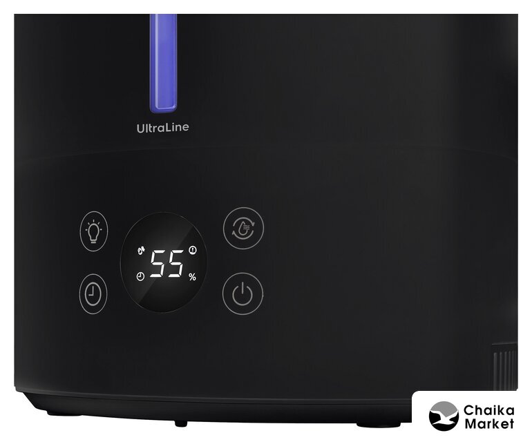 ультразвуковой, помещение до 40 м², производительность 400 мл/ч, резервуар 4.5 л, гигростат, ароматизация, шум 0 дБ, цвет черный