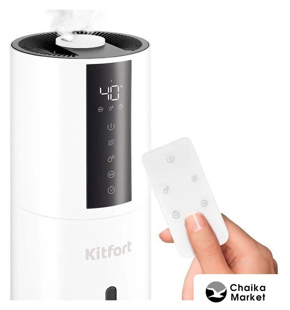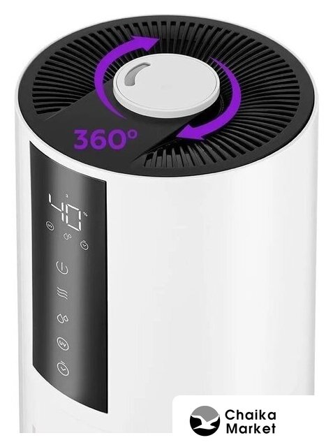 ультразвуковой, помещение до 40 м², производительность 360 мл/ч, резервуар 7.5 л, гигростат, ионизация, ароматизация, шум 38 дБ, цвет белый