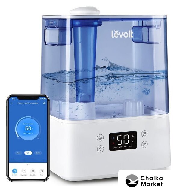ультразвуковой, помещение до 50 м², производительность 350 мл/ч, резервуар 6 л, ароматизация, шум 0 дБ, цвет белый