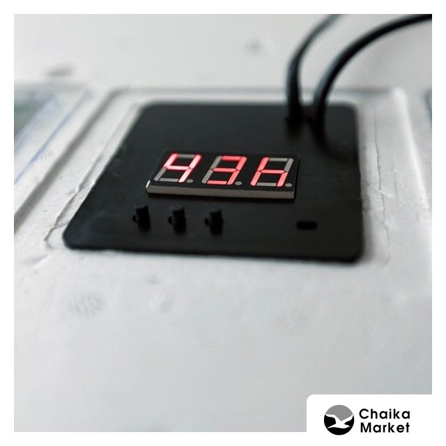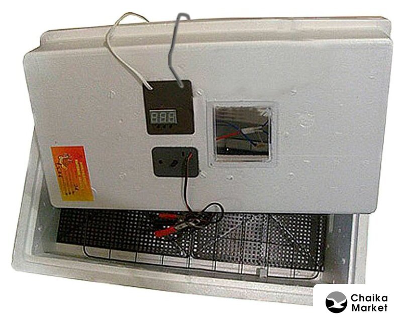 автоматический поворот яиц, естественный воздухообмен, цифровой терморегулятор, 33-45 °C, гигрометр, питание: сеть/аккумулятор, потребляемая мощность 28 Вт