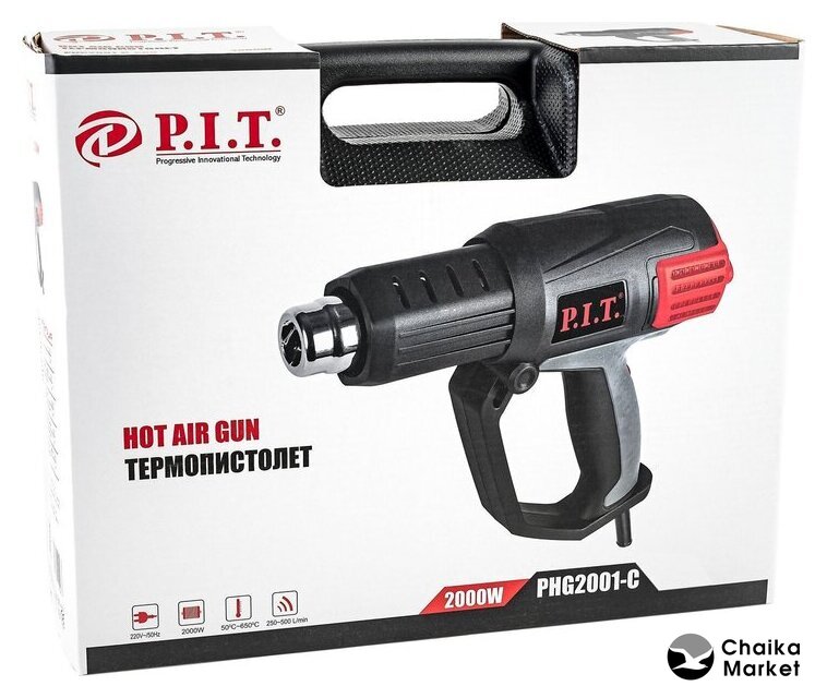 2000 Вт, 50–650 °С, 250–500 л/мин, дисплей, режим холодного обдува, 0.9 кг