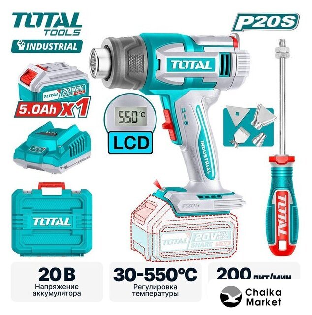 | Комплект поставки | - Термовоздуходувка - 1 шт.- Аккумулятор 5,0 Ач TFBLI20011 - 1 шт.- Зарядное устройство 2,0 А TFCLI2001 - 1 шт.- Редукционная насадка - 1 шт.- Отражающая насадка - 1 шт.- Плоская насадка - 1 шт.- Скребок - 1 шт.- Кейс. |