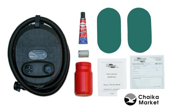 | Комплектация | Разъемные алюминиевые весла 160 см Фанерное сиденье (банка) на сдвижном крепеже 2 шт Сплошной фанерный настил с алюминиевым Н-профилем Надувной киль Боковые алюминиевые стрингера Помпа-насос 5 л Рем-набор Транспортная упаковка (сумка-чемодан). |