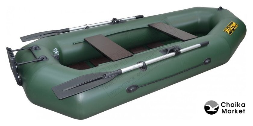 моторно-гребная лодка, дно: реечное (слань), ПВХ 750 г/кв.м, навесной транец, грузоподъёмность: 210 кг, 2 места, 2.6x1.23 м, 18 кг