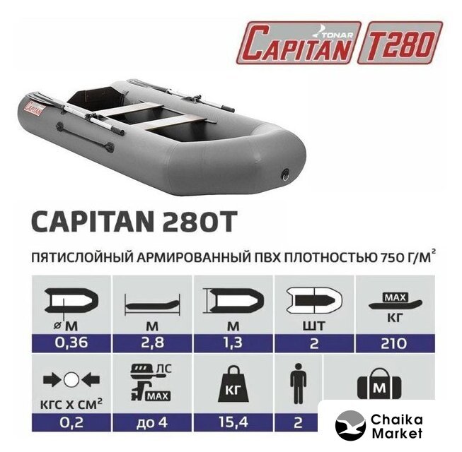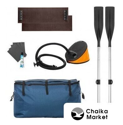 | Комплектация | весло (2 шт.), насос (ножной 5 л), ремкомплект, сумка упаковочная (81×53×32 см), руководство по эксплуатации (паспорт), банка (сиденье) (2 шт.) |