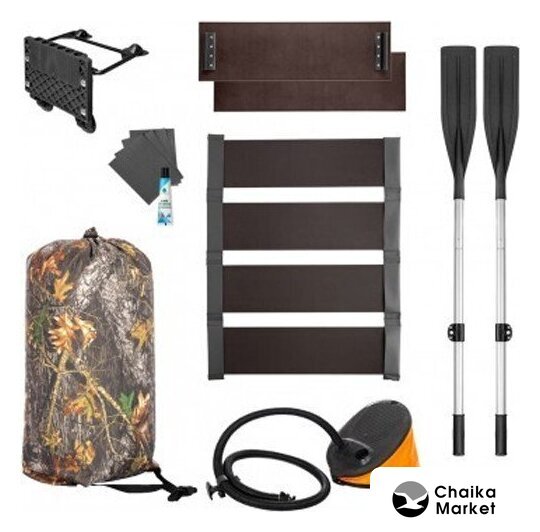 Комплектация | • Ножной насос 5 л;• 2 весла с держателями весла в уключине;• 2 жестких сиденья;• Реечная слань;• Навесной транец;• Сумка для хранения и перевозки;• Ремкомплект и руководство по эксплуатации (паспорт). |