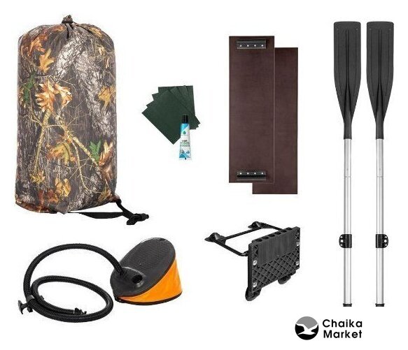 | Комплектация | весло (2 шт.), насос (5 л), транец, ремкомплект, сумка упаковочная, руководство по эксплуатации (паспорт), банка (сиденье) (2 шт.) |