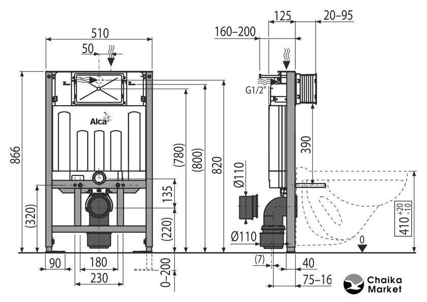 крепление на капитальную стену/на пол/на некапитальную стену, макс. нагрузка 400 кг, двухрежимный слив, механическое управление, бачок в комплекте, 50x115-135x14-27 см