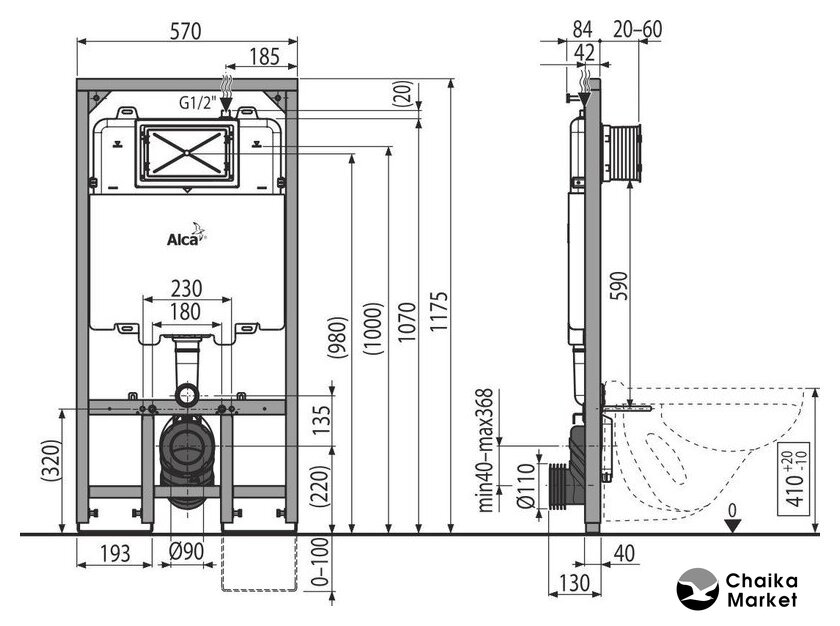 | Отверстия под унитаз | 180 мм, 230 мм |