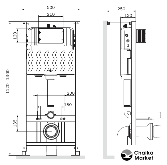 крепление на капитальную стену/на пол/на некапитальную стену, механическое управление, бачок в комплекте, 52.5x112x13.5 см