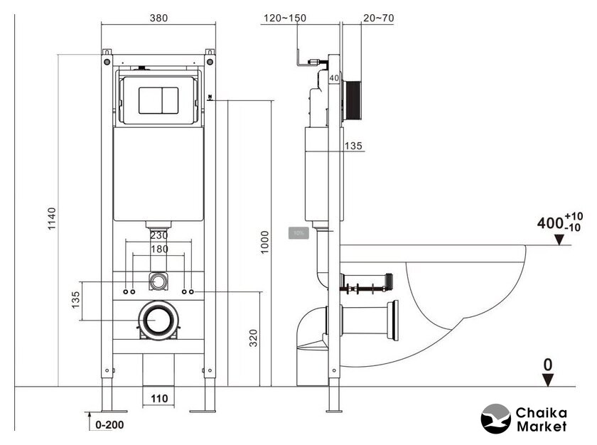 | Отверстия под унитаз | 180 мм, 230 мм |