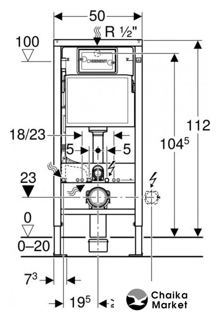 крепление на капитальную стену/на пол/на некапитальную стену, механическое управление, бачок в комплекте, 52.5x112x13.5 см