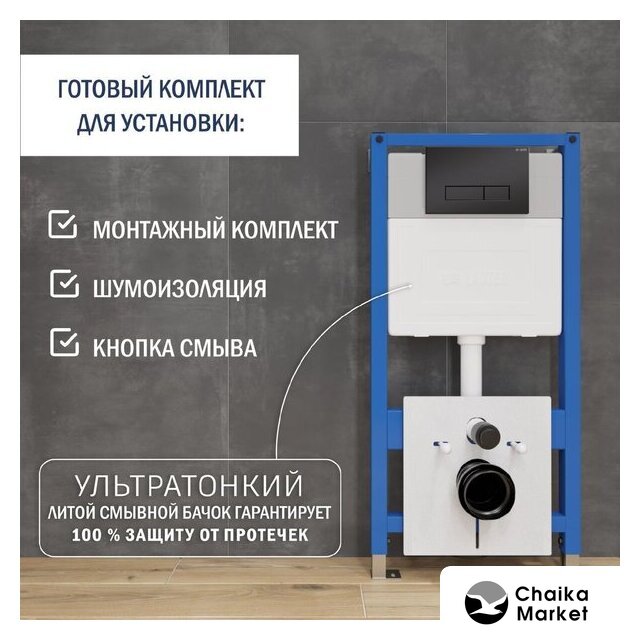 крепление на капитальную стену, макс. нагрузка 400 кг, двухрежимный слив, механическое управление, бачок в комплекте, 48x118x14-17 см