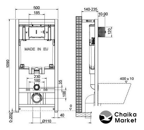 крепление на капитальную стену/на пол, макс. нагрузка 500 кг, двухрежимный слив, механическое управление, бачок в комплекте, 52.5x111.9x10.5-15 см